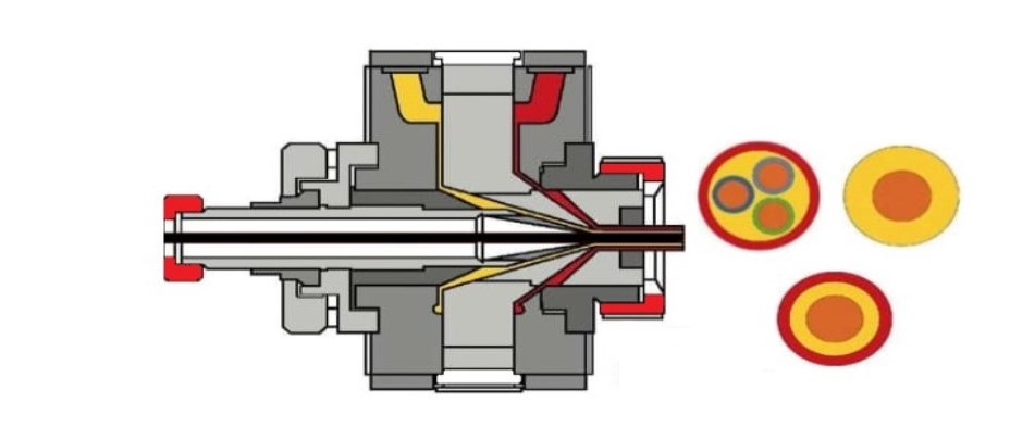 4. Over Jacket Extrusion: Over jacket extrusion is employed in applications where complete coverage of a material with plastic is necessary, such as insulation wires. The process is straightforward: the material requiring the protective plastic coating is drawn through the die, resulting in a plastic cover.