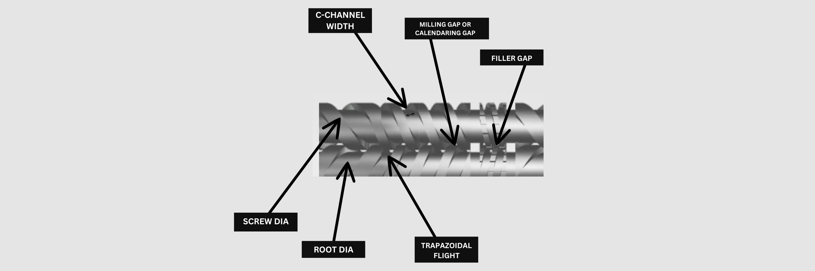 1. Milling Gap or Calendaring Gap The milling action predominantly transpires at the "milling gap." Here, the material is sheared between the flight tip of one screw and the channel bottom of the other screw, which rotate at the same RPM but different linear speeds. The amount of work imposed on the material and the resulting temperature rise are primarily controlled by the size of the gap and the screw's speed. This incremental process efficiently elevates the entire mass of material to the desired temperature in a controlled manner.